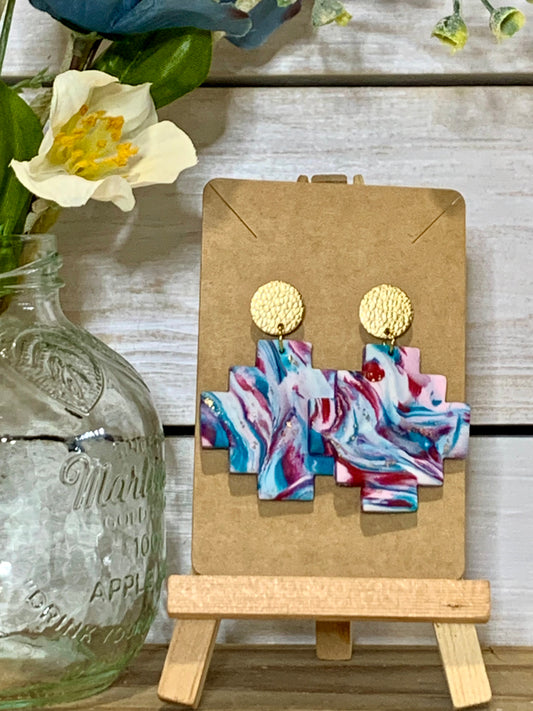 Mixed Pastel Colors Earring with Gold Circle Stud